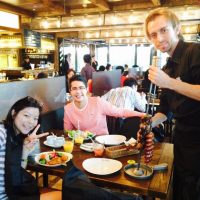 Preparação de carnes antes do rodízio e atendimento de mesas durante.