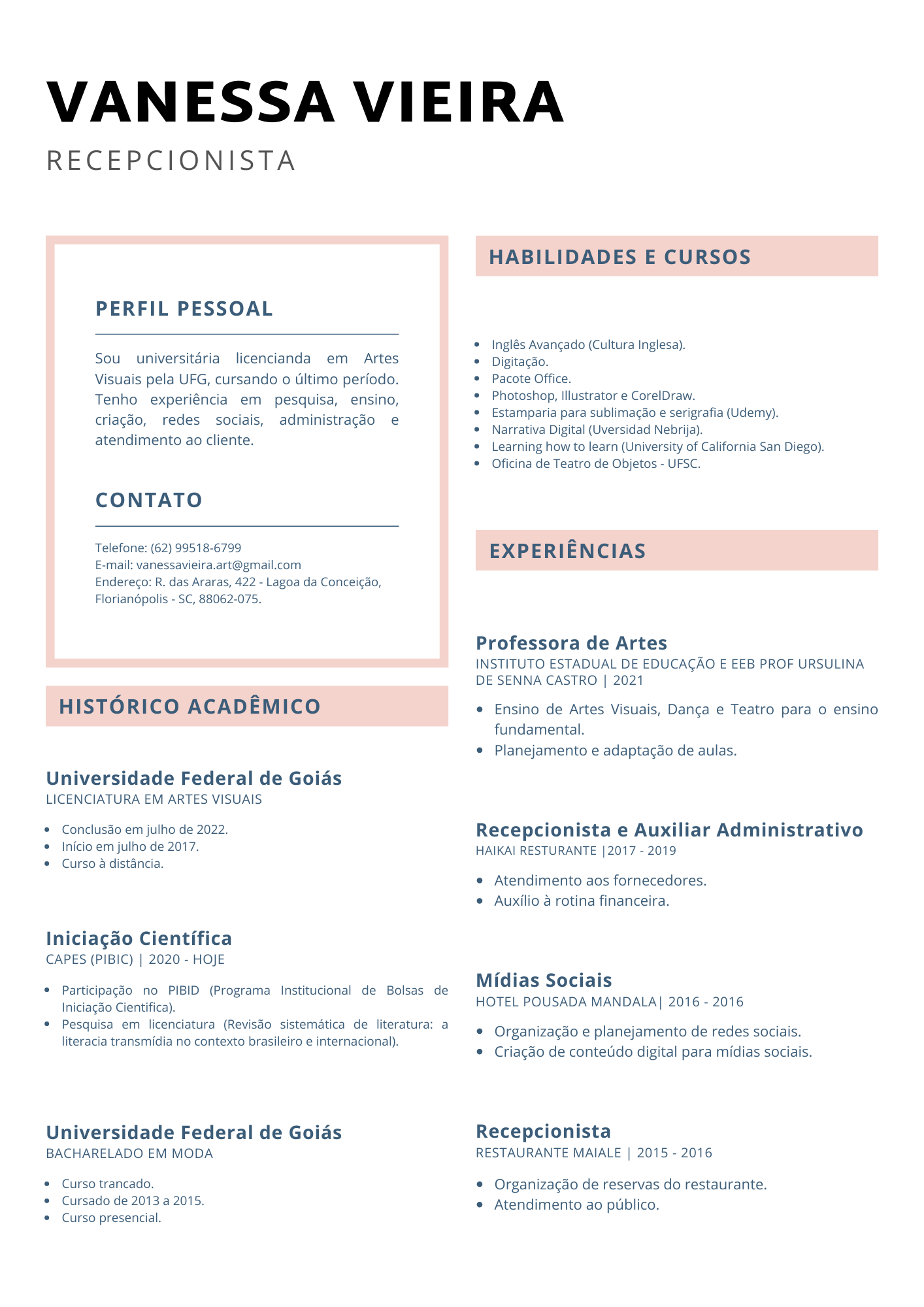 Sou universitária licencianda em Artes Visuais.