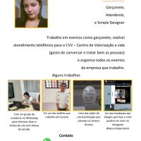 - Tenho 4 anos como garconete estou livre aos finais de semana, sou pontual trabalho bem em equipe trato bem a todos.